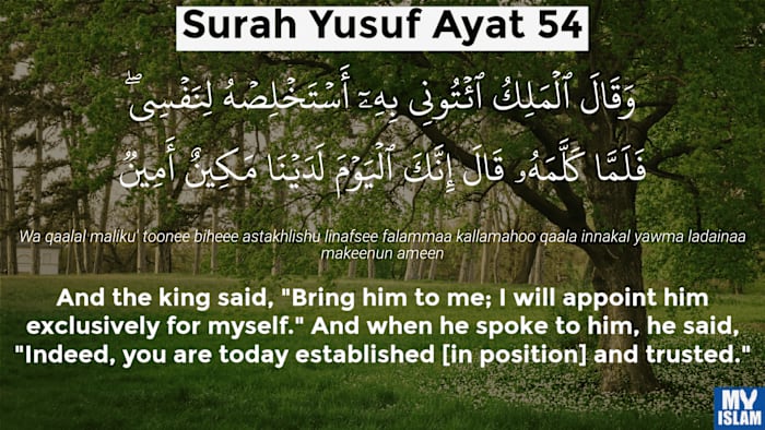 Hazrat Yusuf is described as having the three characteristics of the ideal statesman: pastoral ability (developed when he was young and in charge of his father's flocks); household management (from his time in Potiphar's house) and self-control, as seen on a number of occasions. He was pious and Allah-fearing, full of temperance, ready to forgive, and displayed goodness to all people.